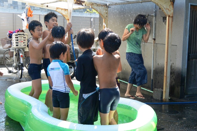 小さな子は水遊び