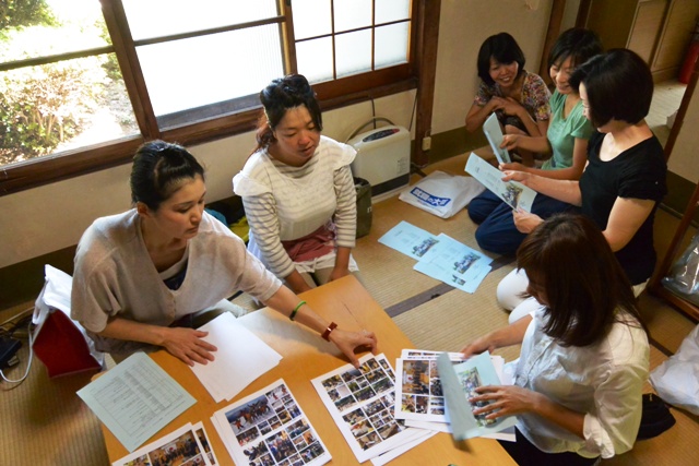 保護者は雑談をしながら、デンリーダーさんの発案で作った「1年間の思い出」の製本&昼食準備。