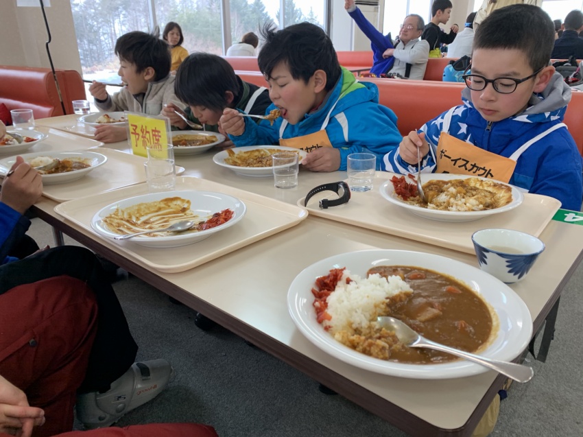 お昼はカレーです。たくさん滑ってお腹もペコペコ