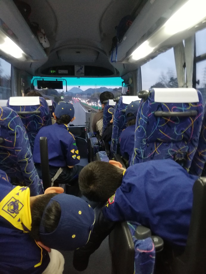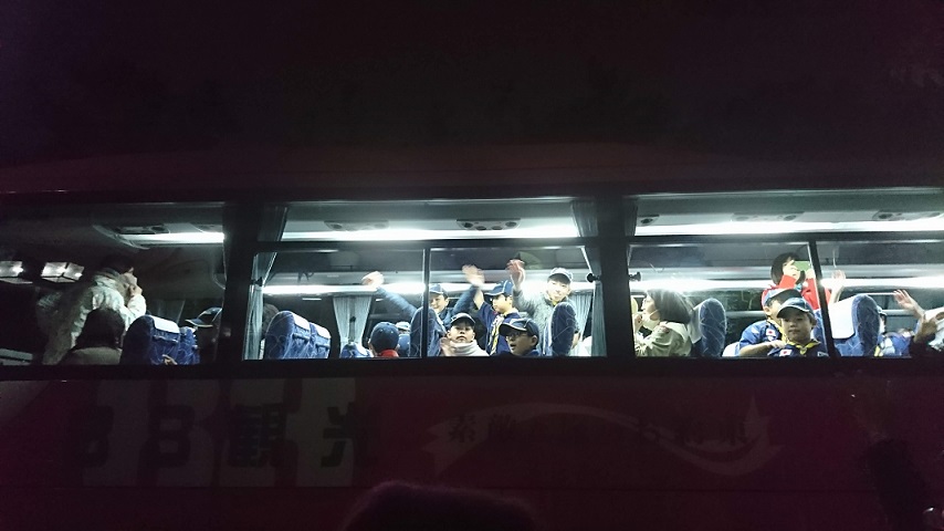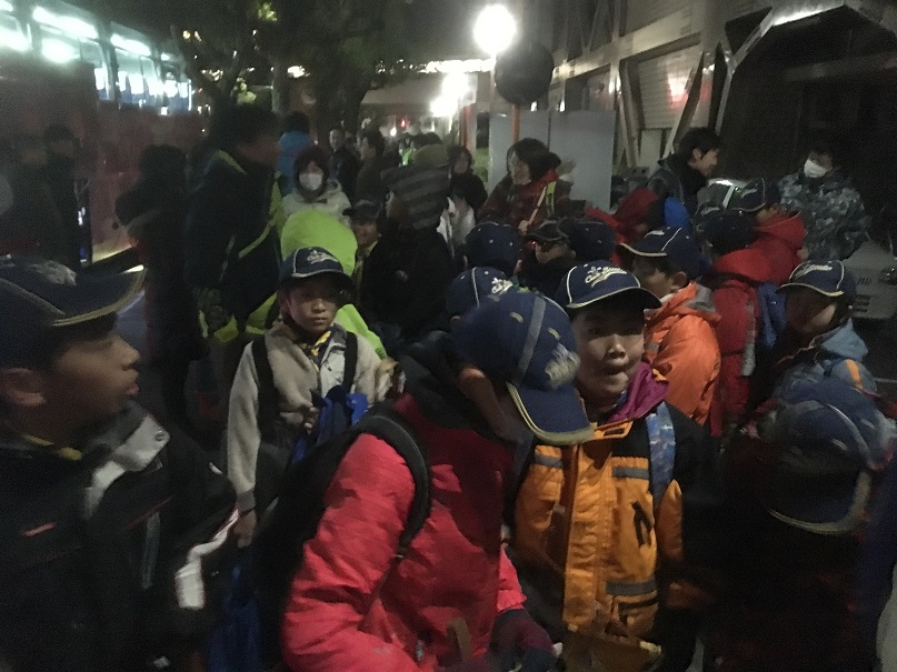 早朝から保護者の皆さまに連れられて暗い中集合。
