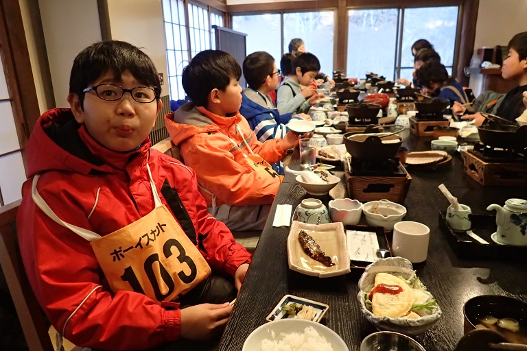 最終日の朝ごはん、力をつけて、目指せ!スキー章!!