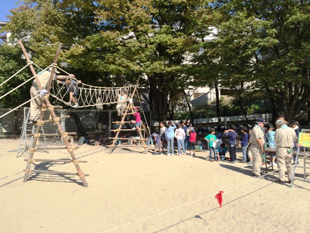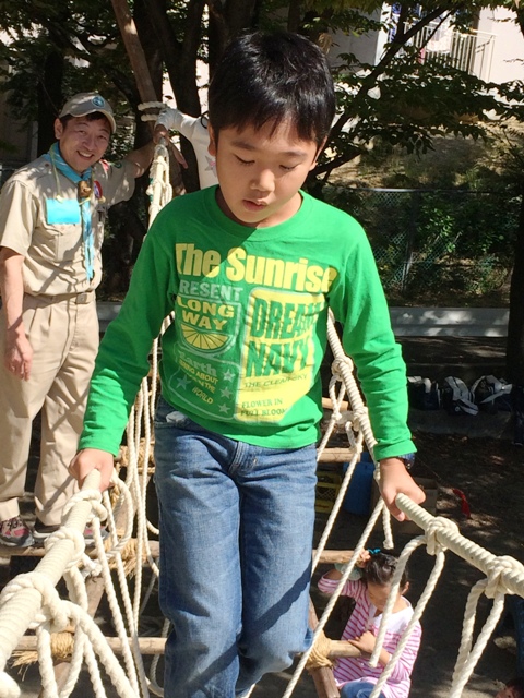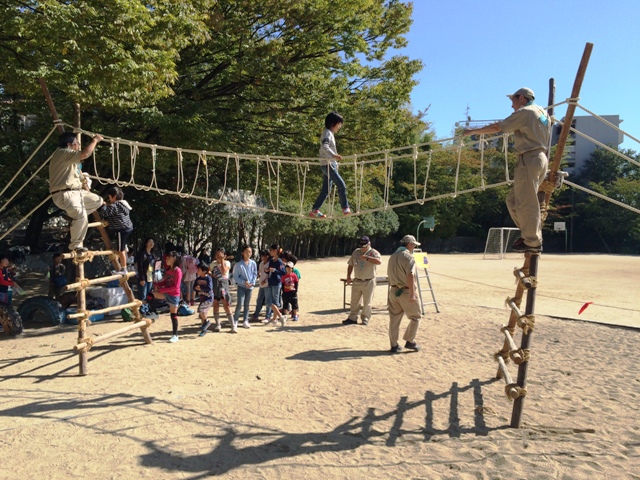 10月18日(土)は、9団エリア内の千里第三小学校の児童を対象にした千三カーニバルが開催され、9団としてモンキーブリッジと森の教室を行いました。