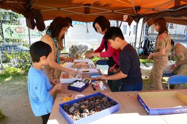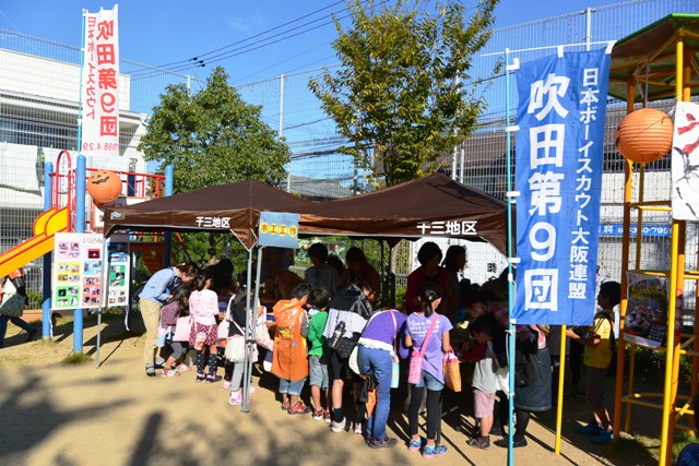 10月19日(日)は、9団地域奉仕として、千里新田小学校近くの、千里山竹園児童センターのおまつりの手伝いに行きました。