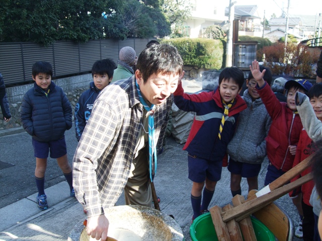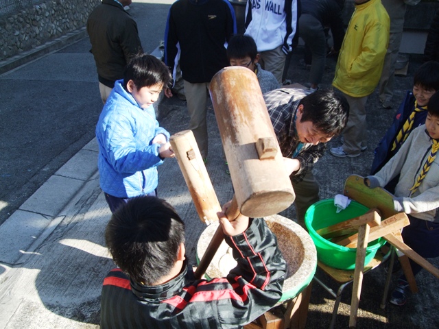 隊長や男性副長、お手伝いのお父さんは餅つき