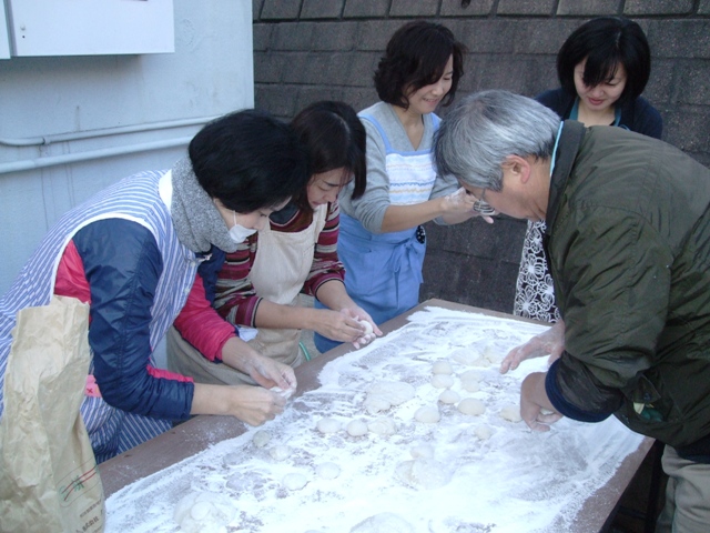 女性副長やお手伝いのお母さんは餅まるめや昼食準備など総出です