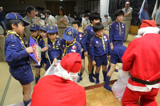 すべての出し物が終わるとサンタさんの登場でプレゼント交換