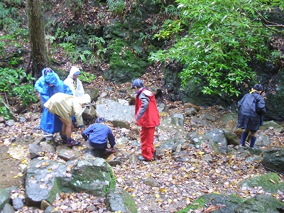 サワガニ取りに夢中