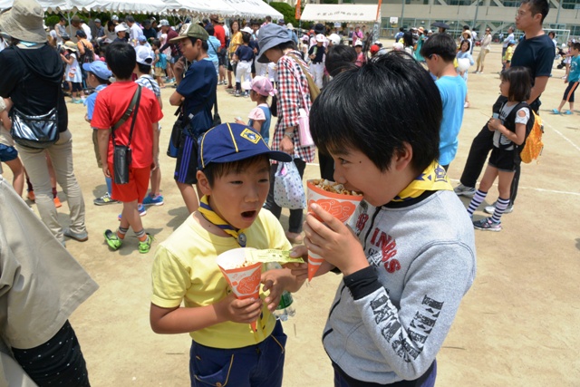 5月24日(日)は千里第二小学校で、地域の子どもカーニバルがあり、吹田第9団も地域奉仕として参加しました。