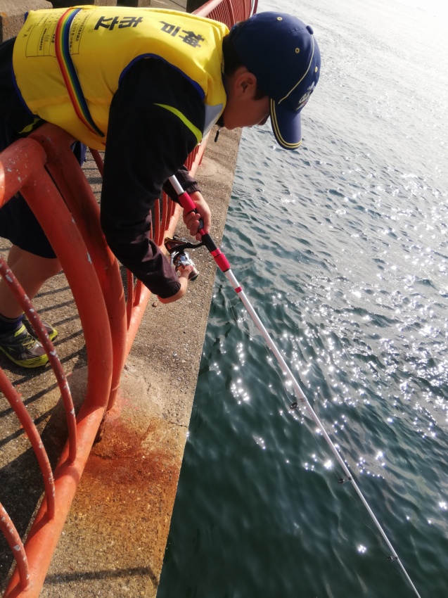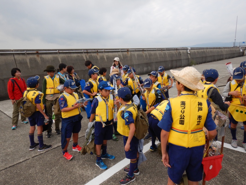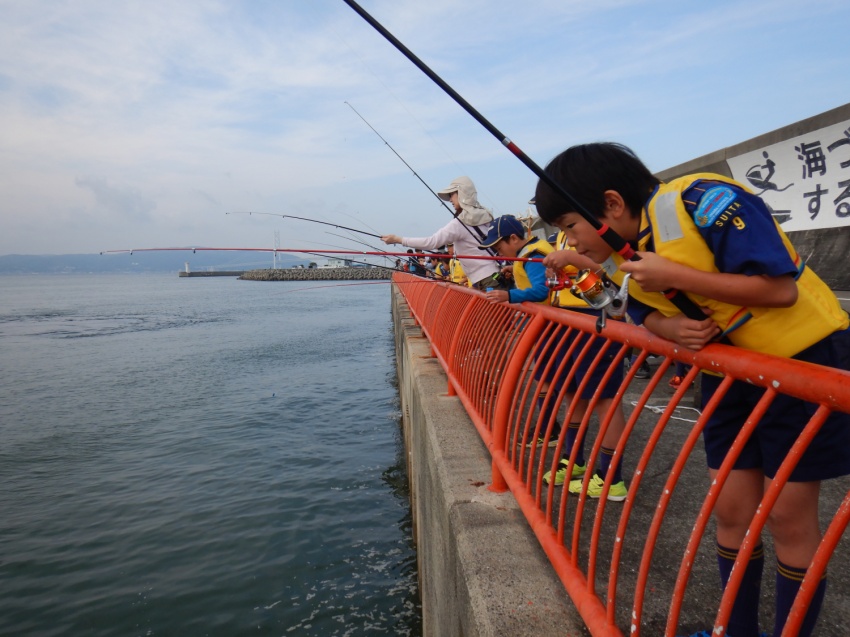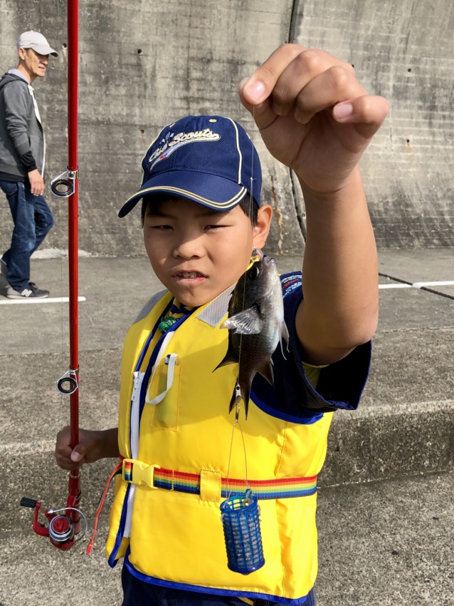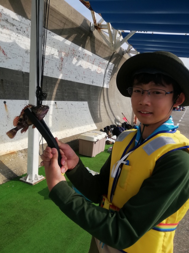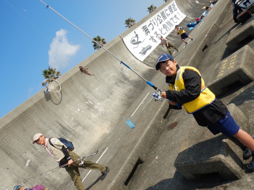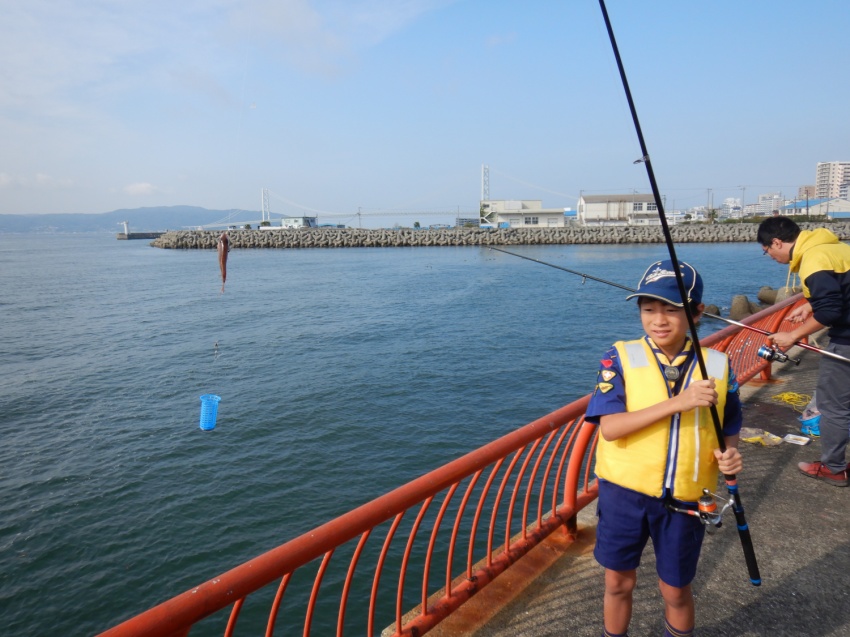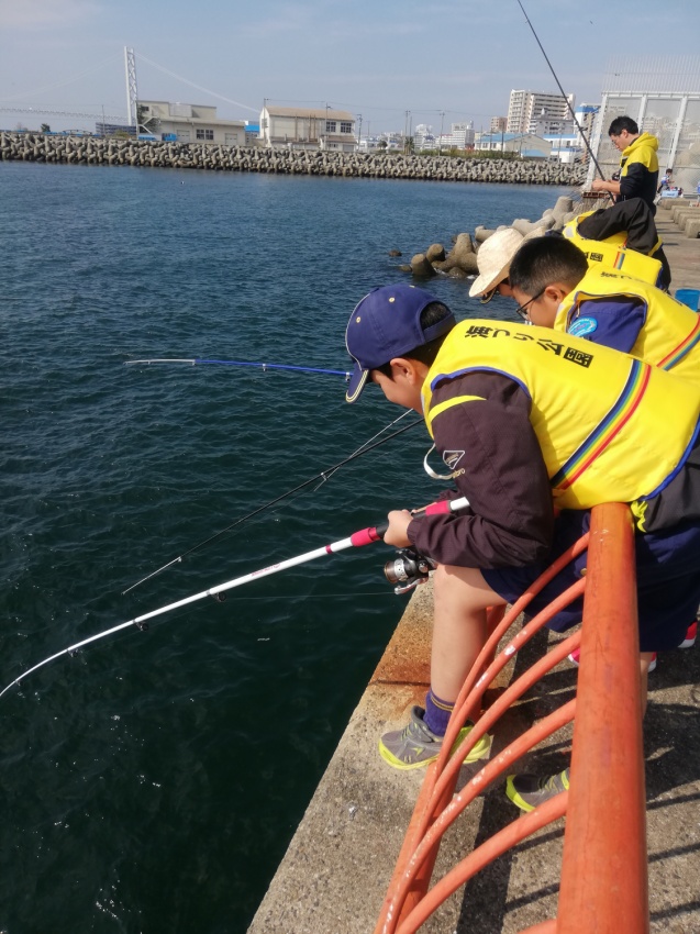 神戸の平磯海釣り公園で釣りです! 何匹釣れるかな? どこにいるかな 釣れたぜ! 当日は天気も良く、人も多かったです。 少しでも近くに、、、(落ちないようね) 釣り終了です。近くの公園に移動し、まずはお昼ごはん。 なわ結びの練習 なわ結びの練習!? 魚拓もとりました。 大漁賞!!! 小さな魚ばかりでしたが、みんなよく釣れていました。