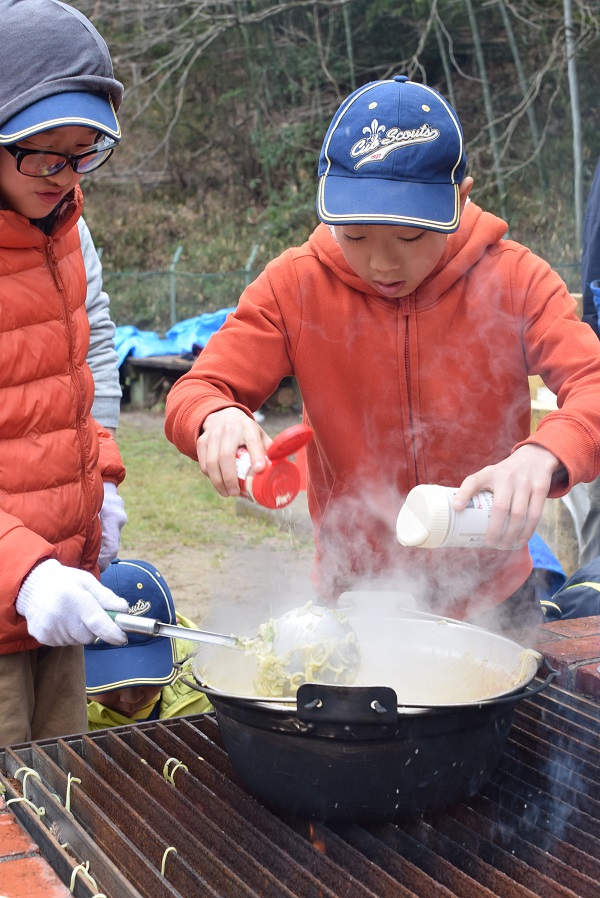 ベンチャー隊のお兄さんに毒見。。。もとい、味見して貰っています。