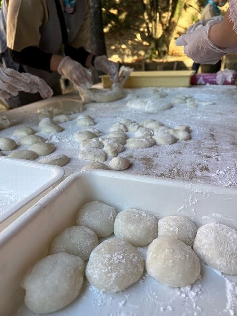 お餅つきを、杵と臼を用いてやりました、久しぶりなので