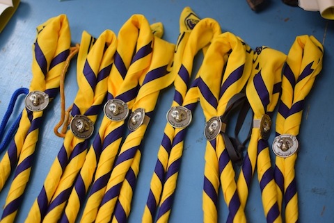 ここに、カブのチーフが8つあります。これから式典で使います。