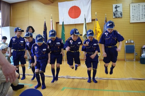 ビーバー隊隊長の「とべ!!」という掛け声で、一斉にロープを飛び越えます!