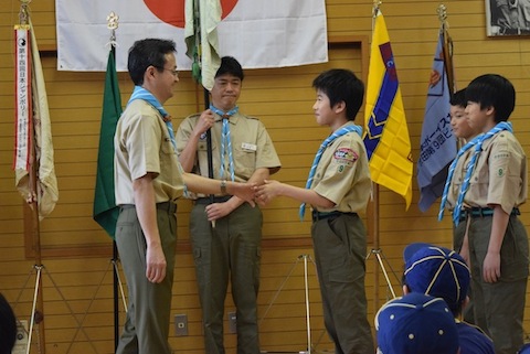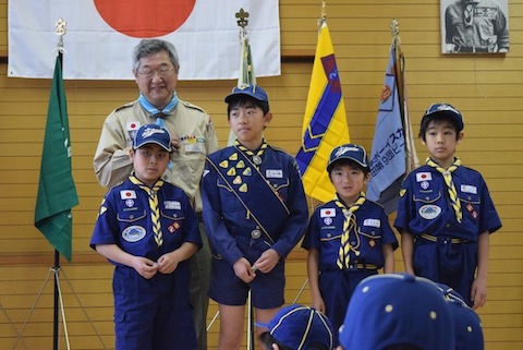 昨年度くまスカウトだった3名は、揃ってボーイ隊に上進しました。頑張ってくださいね!