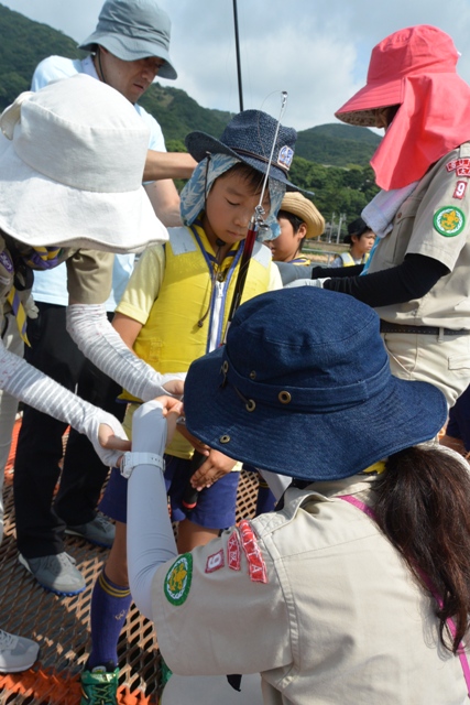 こんな大きい網をビーバ、ボーイ隊と合同で引っ張りました