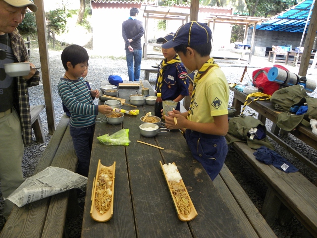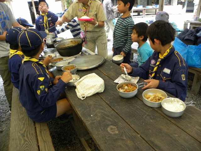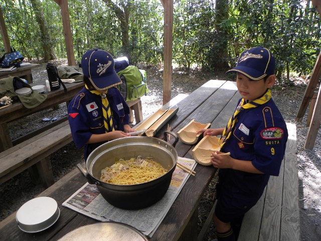 続いて2日目です。朝はビーバやボーイ隊と一緒にラジオ体操を