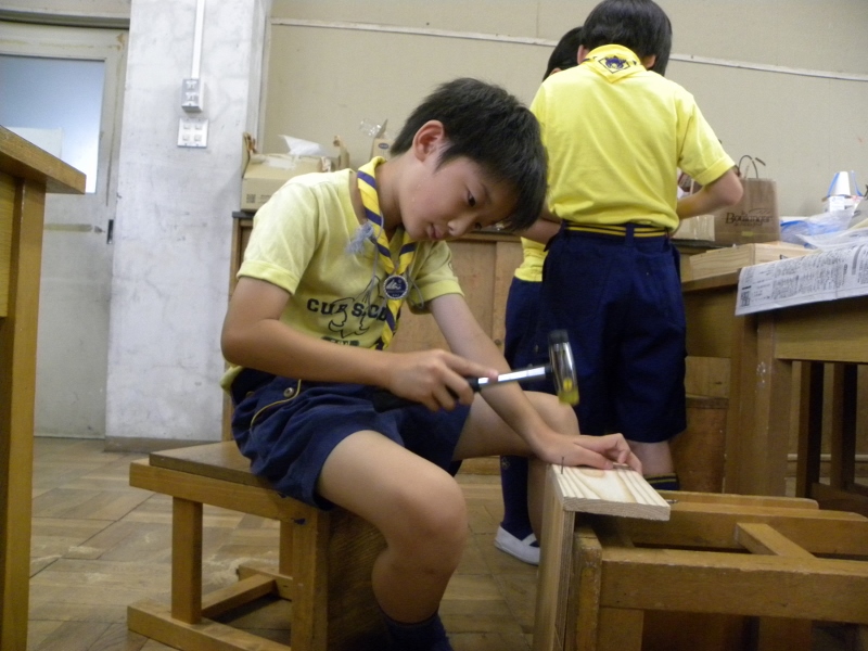釘を斜めに打ち込んでしまい、先が横からはみでる子が続出
