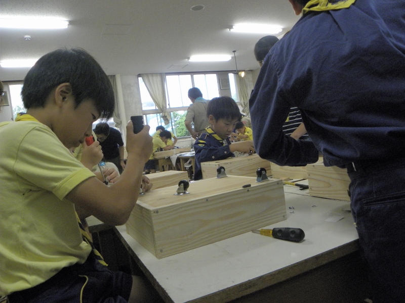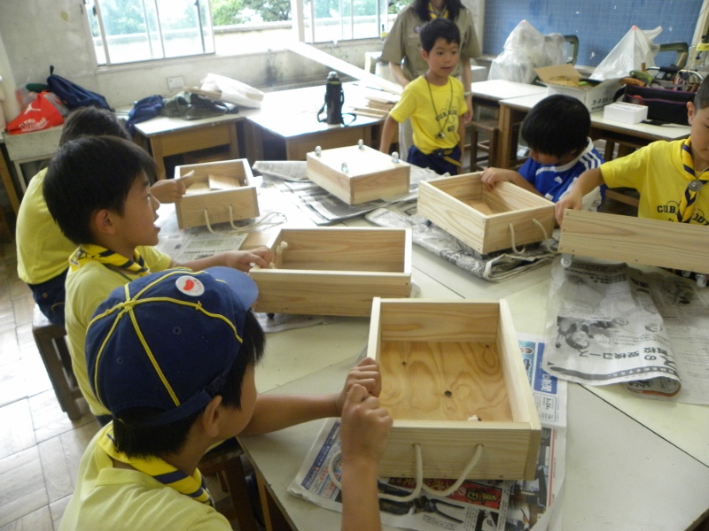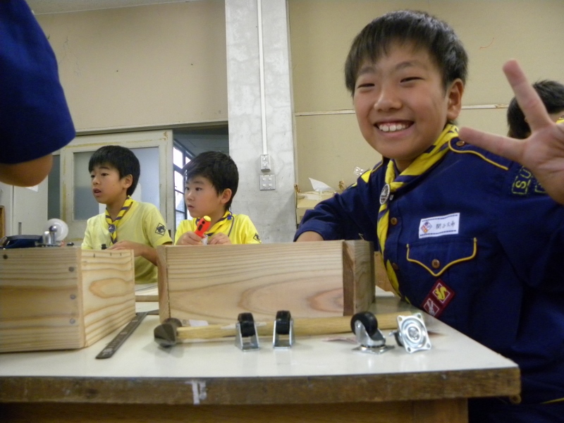 6月19日の隊集会は、千三小学校でミニトロッコ作りをしました。