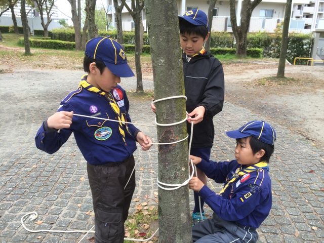 雨がぱらつく曇天の中でしたが、スカウトの総合技能を披露できるプログラムとなりました。