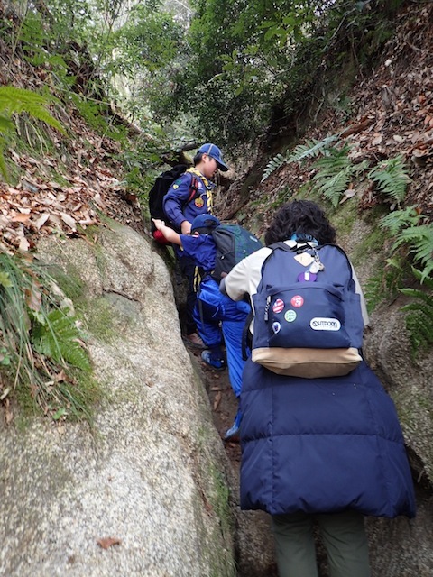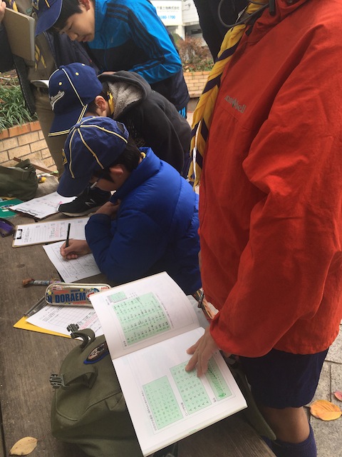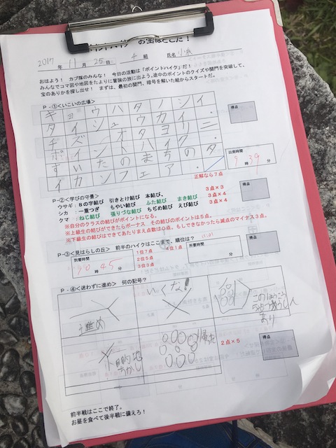ポイントハイク。ハイキングではあるのですが、暗号解き、コマ地図読み、追跡記号読み、計測、ロープワークなどなど、カブ隊で修得したいろんなスキルと、五感と…もしかしたら第六感も使う、ハイキングです。