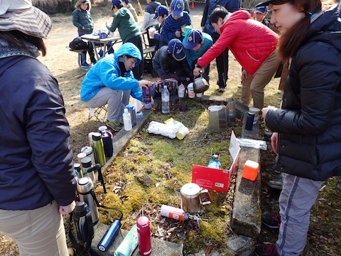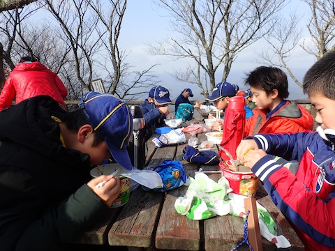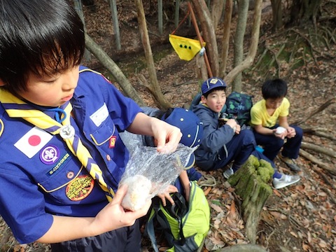 ここでお昼休憩です。各組ごとにカブ弁当を食べます。