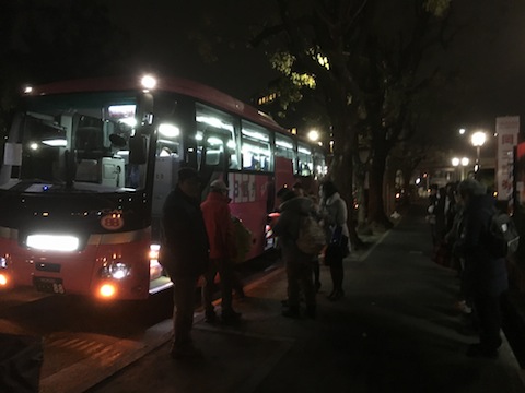 集合は早朝5:45。まだ真っ暗のなか、貸切バスで出発しました。