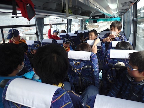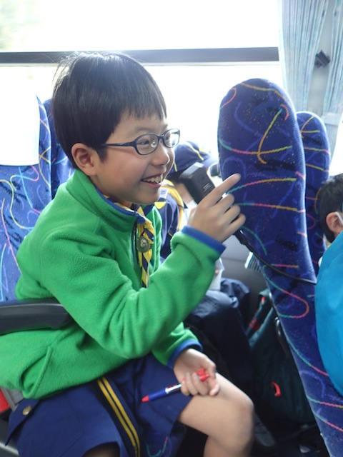 バスの中、寝てばかりの子もいますが、カブスカウトは一番元気でやかましい(笑)