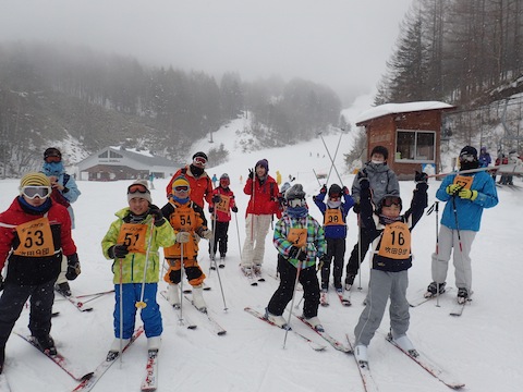 リフトの前で、組ごとに集まり顔合わせ。(ゼッケン番号や服色も覚える感じ)