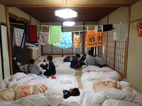 テレビ付きの部屋にあたったスカウトたちは、荷物整理も半端のまま、テレビ見たりやトランプをしていて、リーダーから喝が入りました。やることはきちんとやってくださーい。