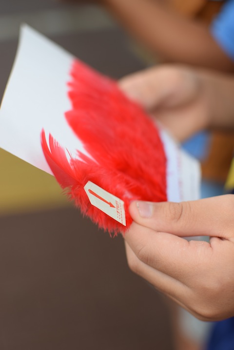 そう赤い羽根ですが、昔は針で刺すタイプでしたが、近頃はテープなんですよ。