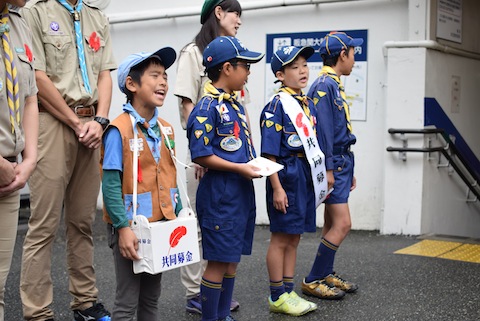 午前の活動は、団活動として赤い羽根共同募金をして、