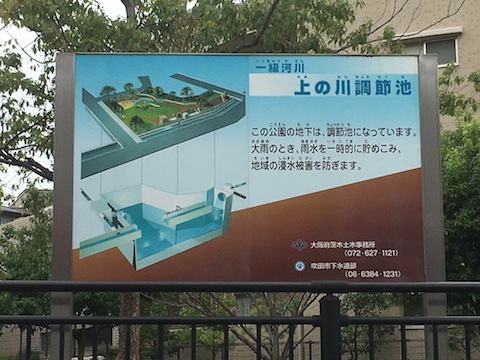 千里山東公園に移動し、地下の「上の川調節池」の見学をしました。