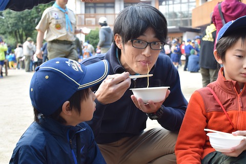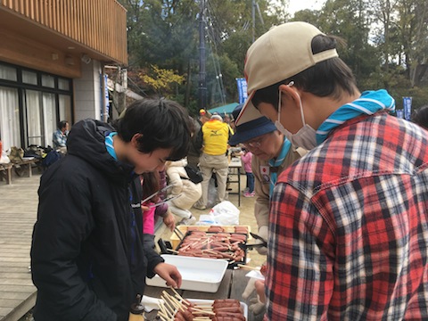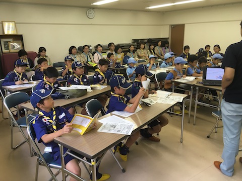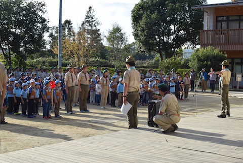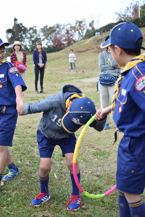 ビーバー隊からベンチャー隊までの混合チームを3つ作り(ボーイ隊はキャンプのため不在)、