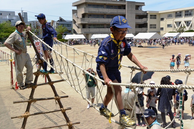 雨がぱらつく曇天の中でしたが、スカウトの総合技能を披露できるプログラムとなりました。