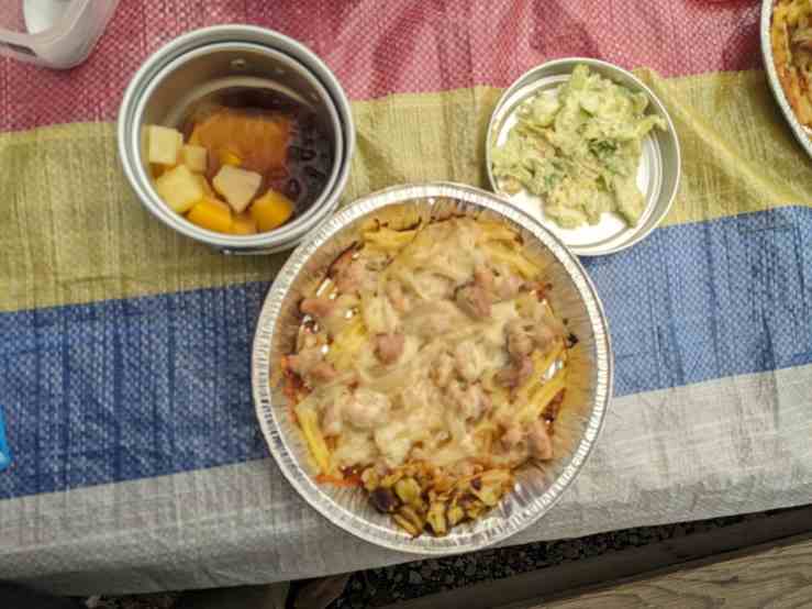 2組は「マカロニグラタン、コールスローサラダ、かんてんゼリーパフェ」