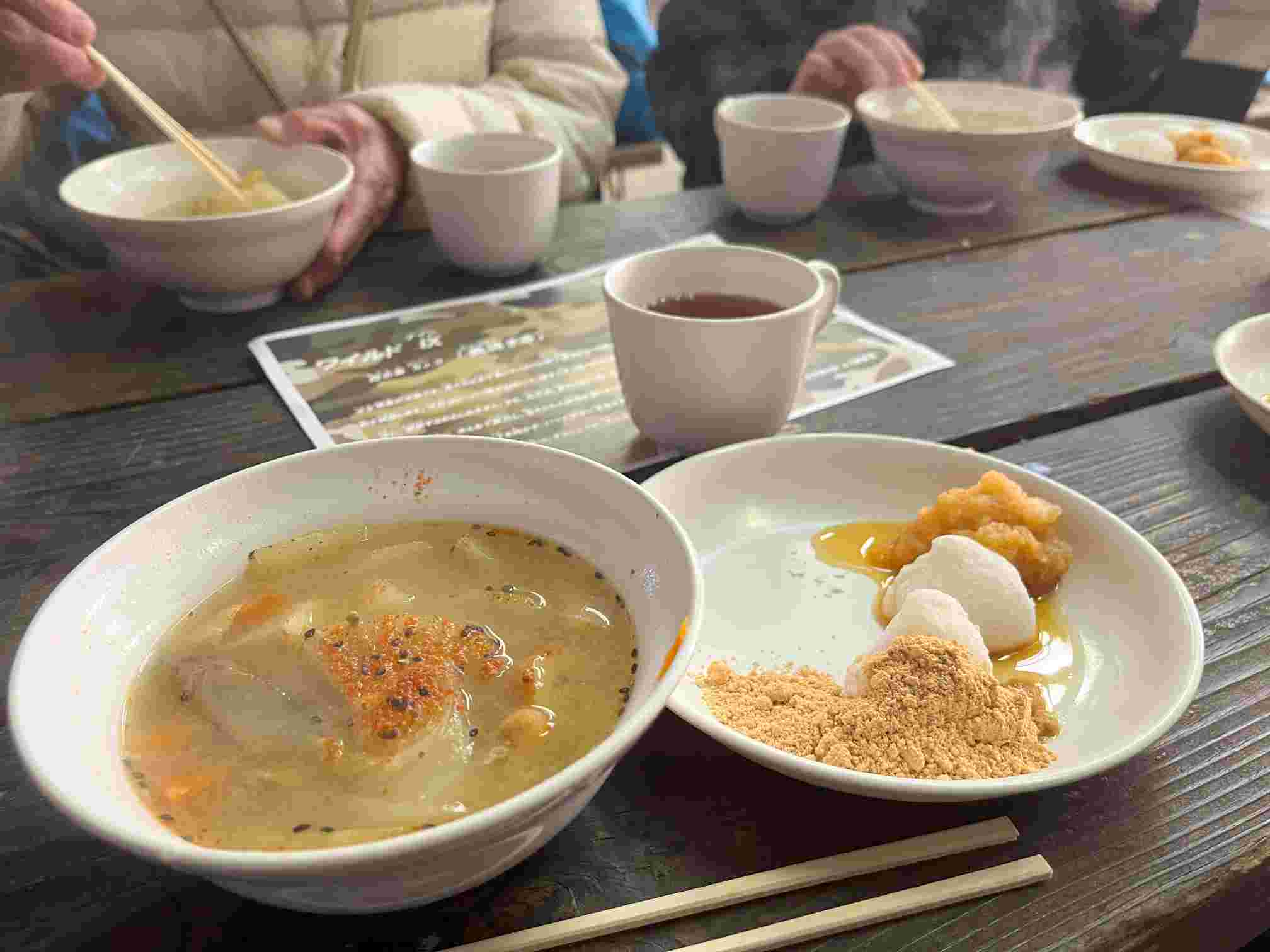 つきたてのおもちを頬張り、あつあつの豚汁のいただいて、あまいおぜんざいを食べたらこころも体もぽかぽかに。