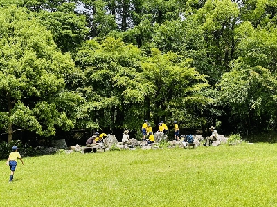 到着し広い園地でそれぞれの組でカブ弁(おにぎり)を食べました